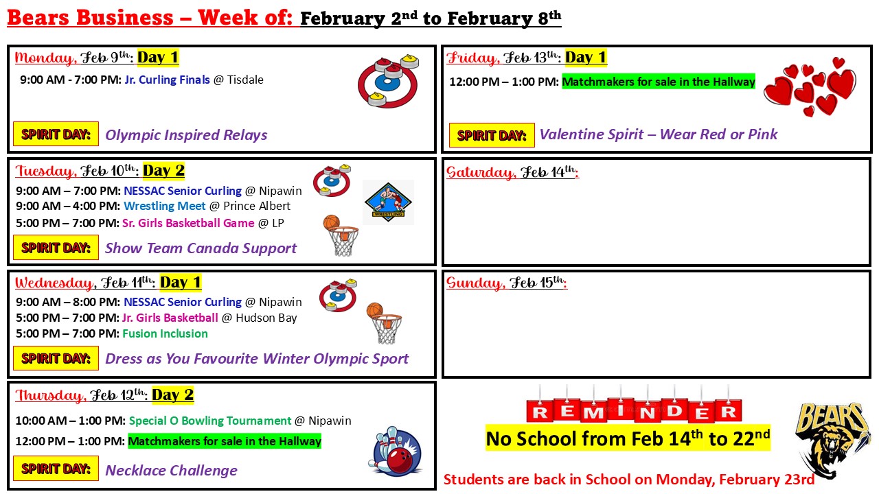 501-535 6th Street East Box 2650 Nipawin, SK, S0E 1E0 Phone: 306.862-4671 Fax: 306.752-1933 email: lpmiller@nesd.ca Instagram: @lpmillerbears