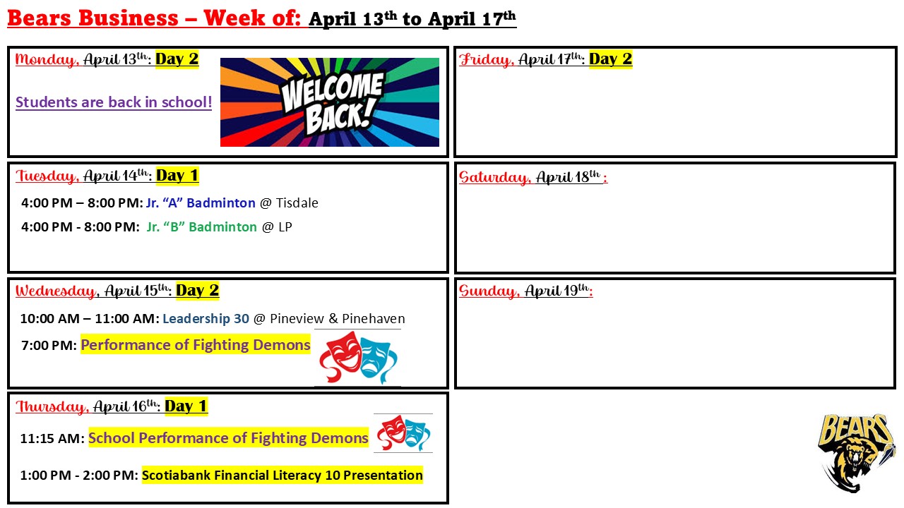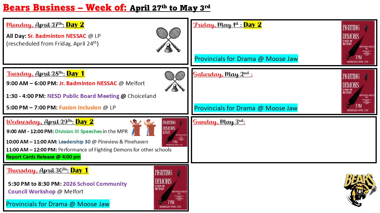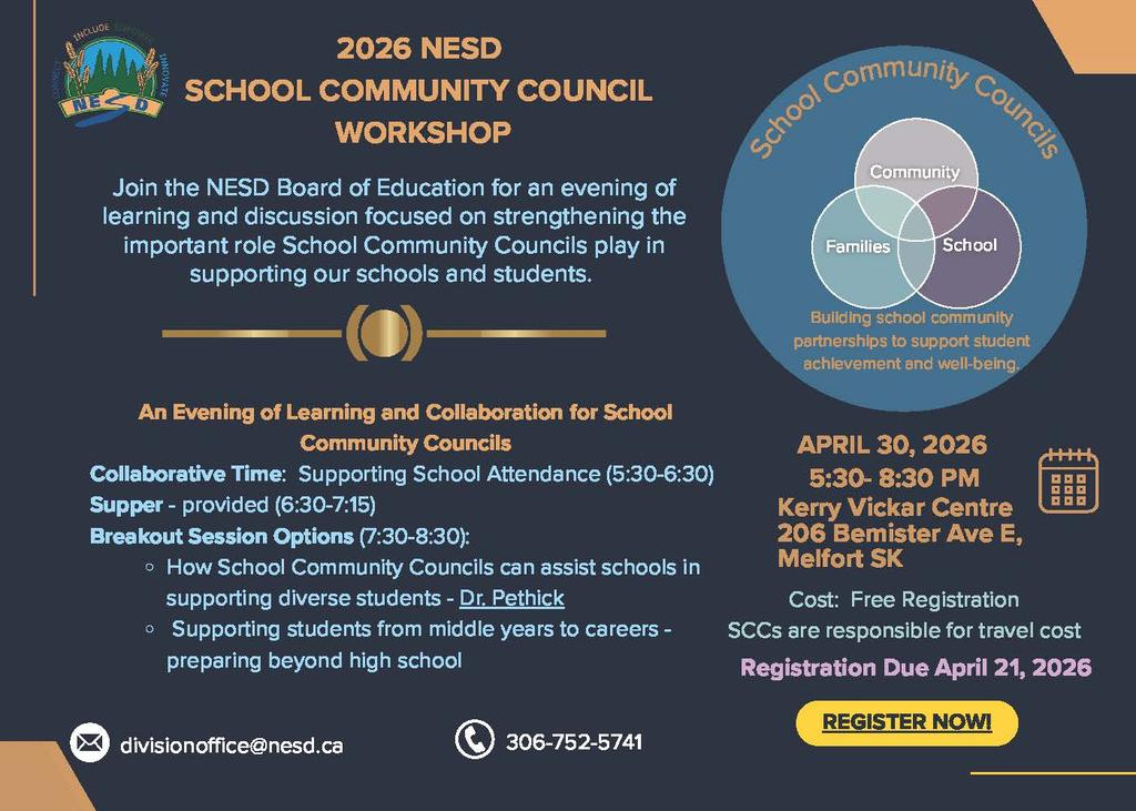 501-535 6th Street East Box 2650 Nipawin, SK, S0E 1E0 Phone: 306.862-4671 Fax: 306.752-1933 email: lpmiller@nesd.ca Instagram: @lpmillerbears